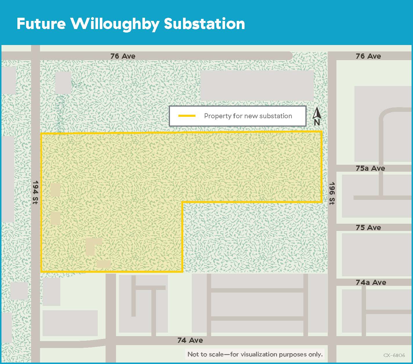 We've purchased a property south of 76 Avenue between 194 and 196 streets. After looking at several other sites for the substation, this site was chosen due to its size and suitability.