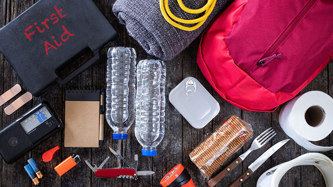 - Have a fully stocked emergency kit that not only includes basics such as a flashlight, extra batteries, first aid kit, water and food, but also required medications, personal hygiene products, and some cash (in small bills) that can be used in an emergency. As earthquakes are a threat in much of B.C., it's a good idea to build a kit that can keep you going for at least 72 hours.